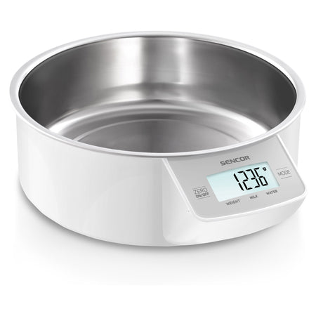 Cantar Bucatarie Cu Bol Metalic Alb Sencor, 1000ml