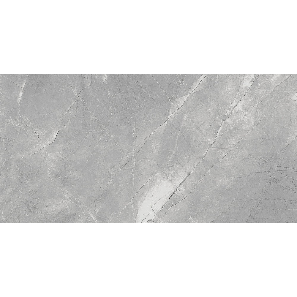 Gresie portelanată cu aspect marmură gri, dimensiuni 60x120 cm.